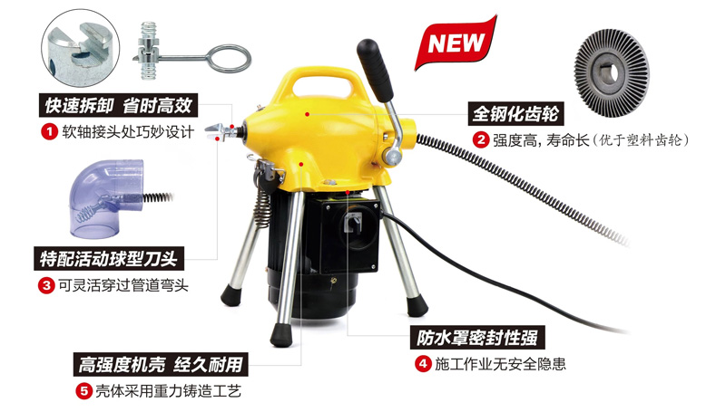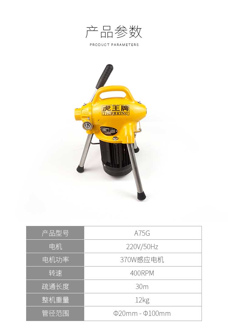 虎王A75G高效管道疏通機(jī)大功率下水道快速疏通機(jī)神器電動(dòng)管道疏通機(jī)