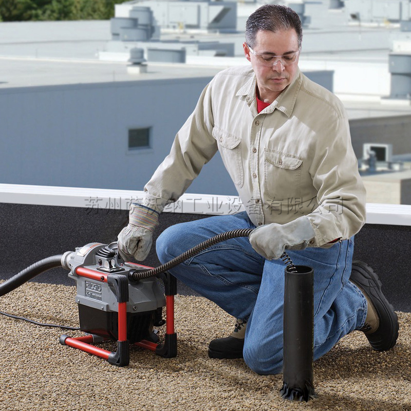 該款機器也可用于屋頂通風管道清理。它尾部有把手,操作者可以方便的通過梯子將其搬到屋頂。