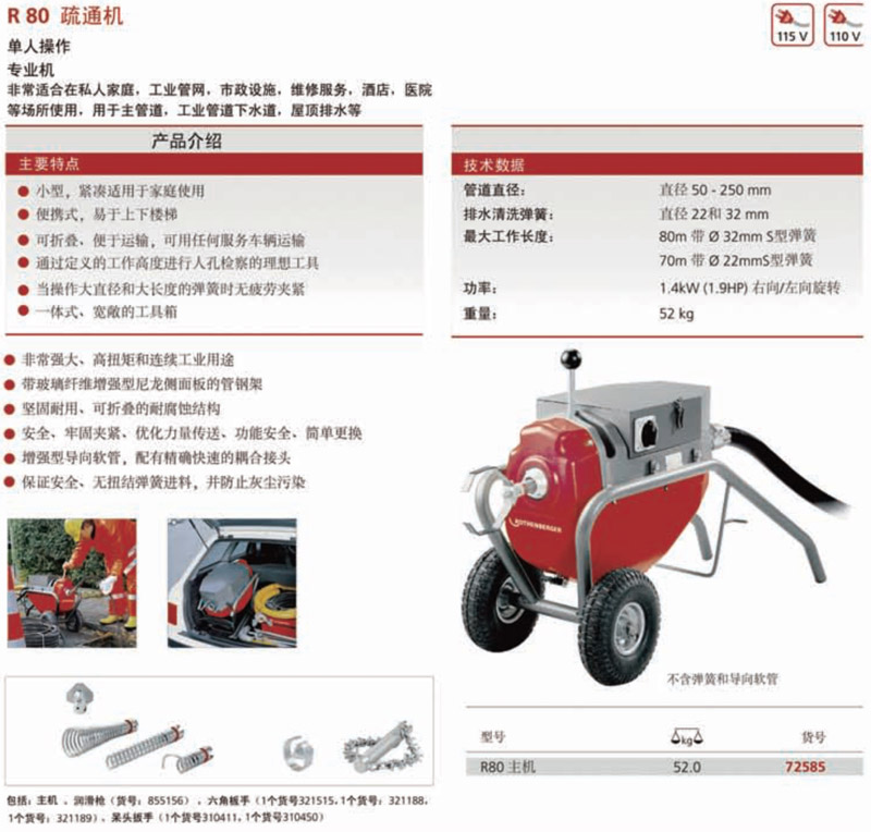 ●(單人操作,專業(yè)機,非常適合在私人家庭,工業(yè)管網(wǎng),市政設(shè)施,維修服務(wù),酒店,醫(yī)院等場所使用)