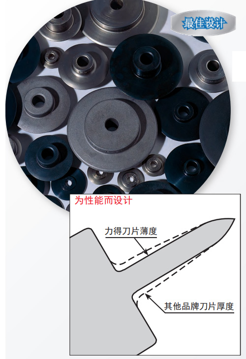 力得刀片幾乎適合所有薄管、厚管和導線管的切割。不僅為力得切管機增添價值,也可與其他一些國際品牌切管機互換使用,提高其他切管機的切割功能。